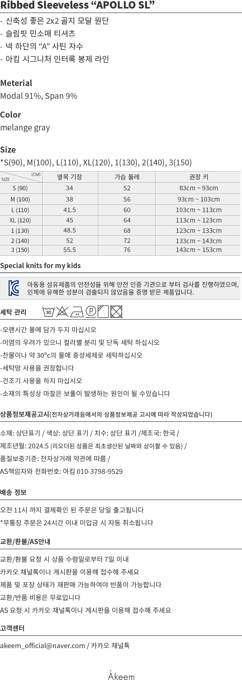 Ribbed Sleeveless "APOLLO SL" -gray-