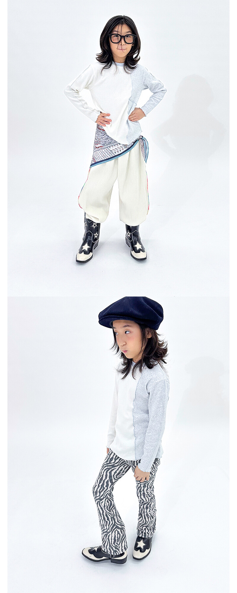 The model is 125cm 23kg and wears 1(130) size