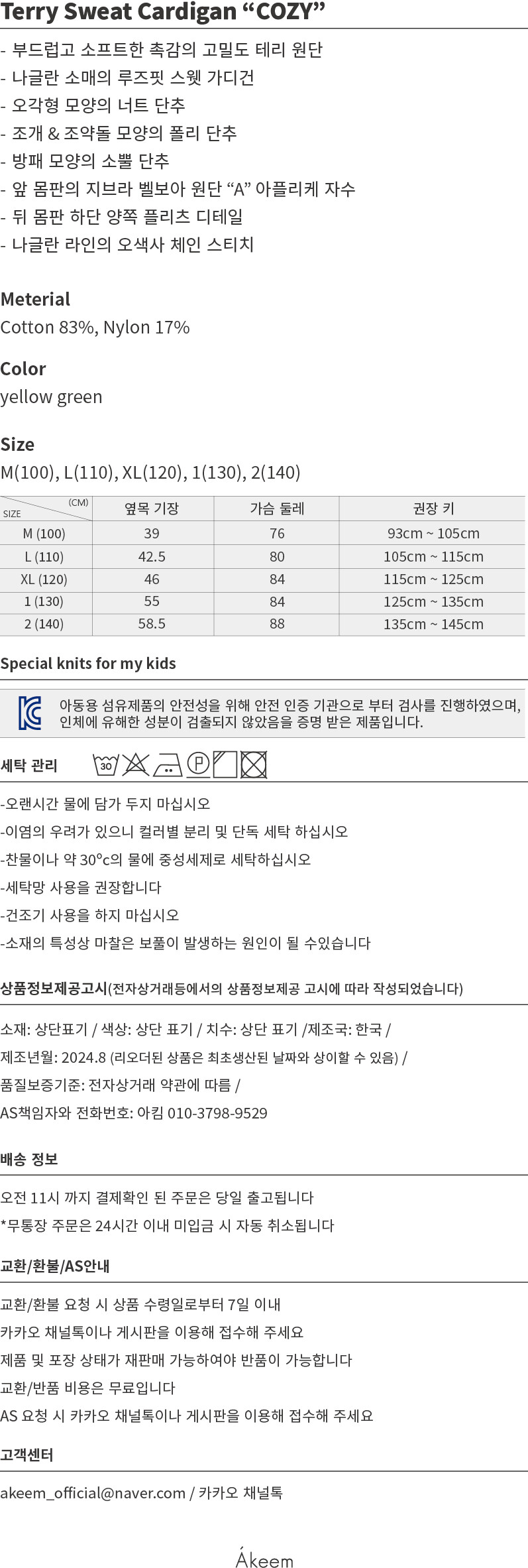 Terry Sweat Cardigan "COZY" -y/green-