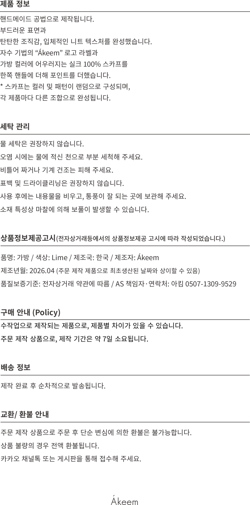 핸드 메이드 가방 "키미"