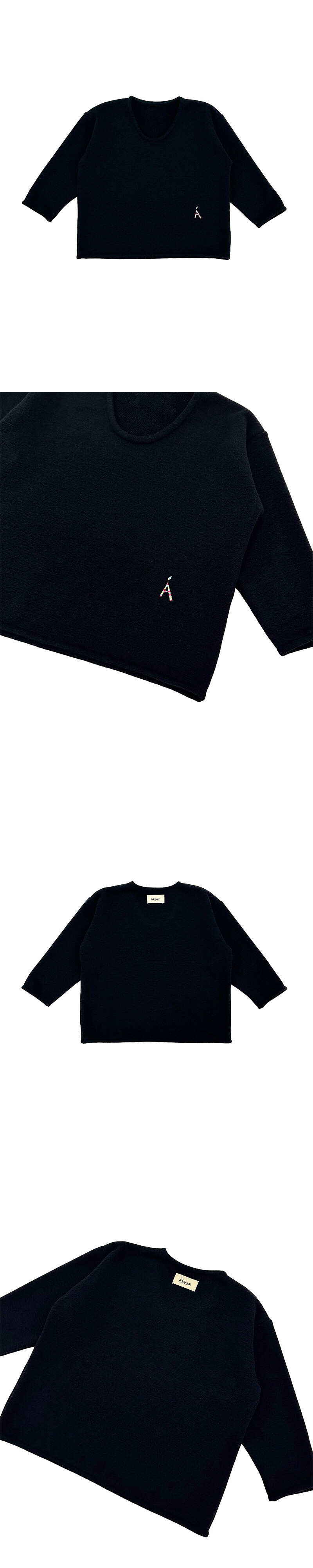 U-Neck Poly Mousse Pullover “MONDE” -black-