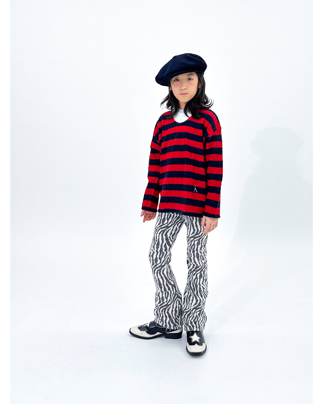 The model is 111cm 17kg and wears XL(120) size