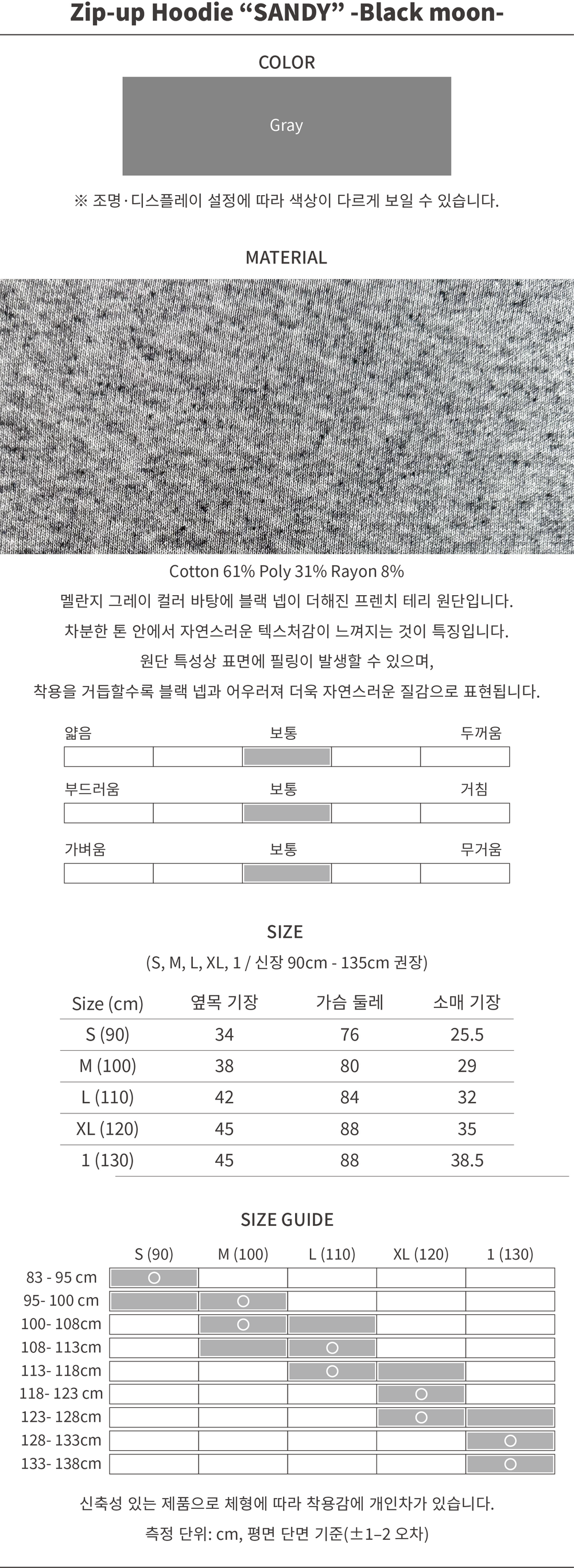 The model is 111cm 17kg and wears XL(120) size